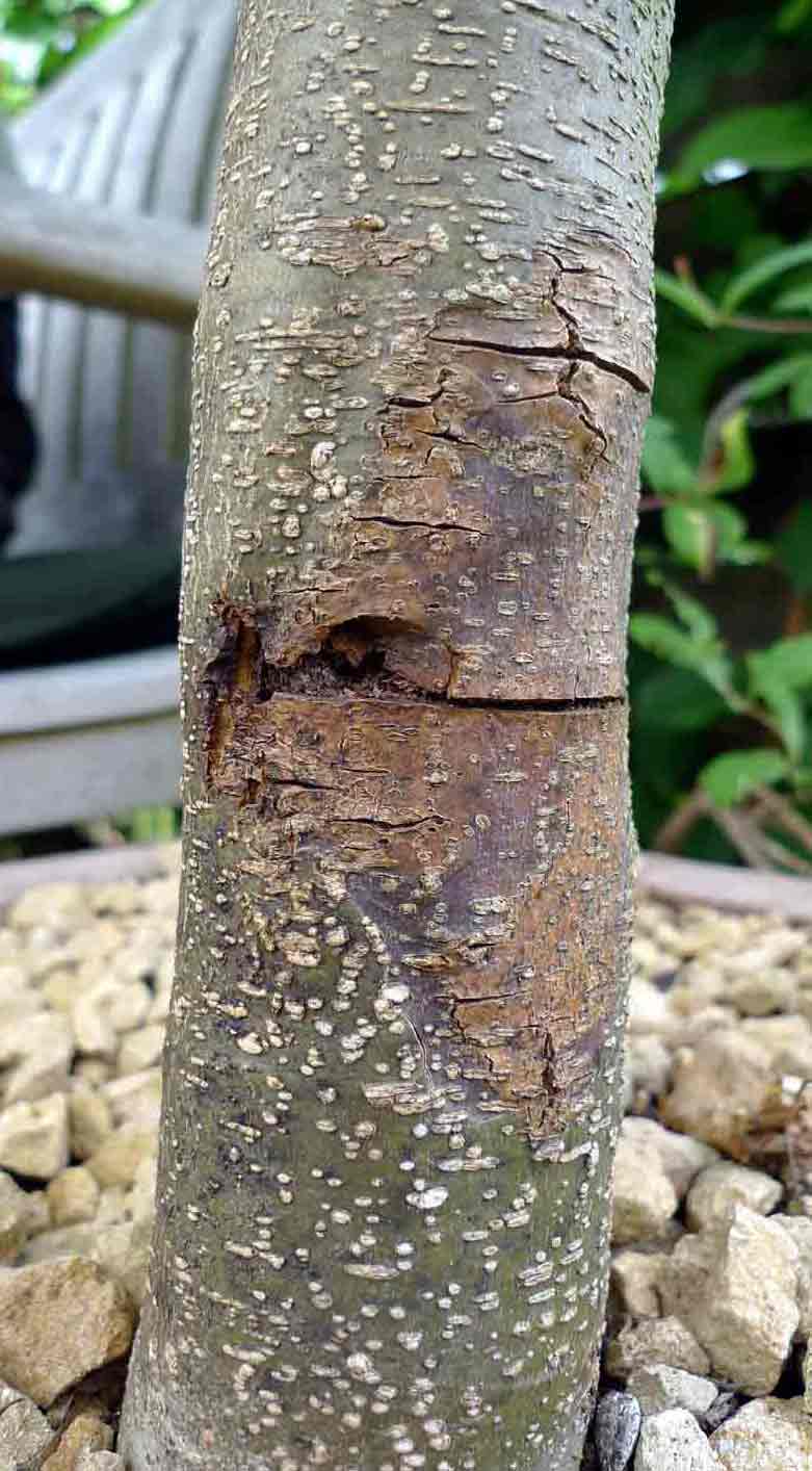 Mein Ligusterbaum, den ich 16 Jahre lang gehegt und gepäppelt habe, weil er aus meinem ersten Garten stammt, zeigt am Stammfuß eine kranke Stelle, die sich zu vergrößern scheint. Das Holz platzt an der befallenen Stelle auf und ist morsch. Weiß jemand, was es ist und ob ich etwas machen kann?