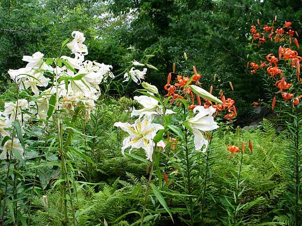 Die Lilium auratum mit Riesenblüten um die 180 cm hoch, da hab ich Biene gespielt. Könnte auch eine platyphyllum sein, nachdem ich bei Lily-dude nochmal nachgeschaut habe. Ist wirklich riesig wie die eine lancifolium im Vordergrund zeigt.