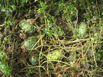 Ich will die Horngurken oder Kiwanos mal wieder aus der Versenkung holen. Habe dieses Jahr wieder 8 Pflanzen die prächtig gedeihen. Bis jetzt habe ich allerdings erst einzelne Blüten gesehen, hoffe jedoch dass es auch Früchte gibt. Die verstecken sich erfahrungsgemäß ziemlich gut, sodaß man sie erst findet wenn sie schon etwas größer sind. In der Mitte steht unser Christbaum, an dem sollten sie hochklettern, er ist aber zu klein