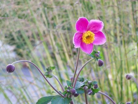 Zum Teil gefüllt und noch auffälliger in der Farbe:Herbstanemone 'Bressingham Glow'