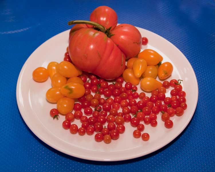 Japan Yellow PearWeiße KöniginJohannisbeertomatenMirabelle gelbAurenthiacumJugosl. FleischtomateBlack CherryRote Mirabelle?? Für eine Mirabelle etwas zu groß. Keine Ahnung was da passiert ist. Vielleicht auch eine Hilda.HildaSagen wir es mal so: Ich bin zufrieden. Einen Teil habe ich eingefroren, eine Teil haben wir im Ratatoui verwendet und der Rest liegt noch da als Brotbelag oder zum einfach so in den Mund schubsen.LGBuchsini