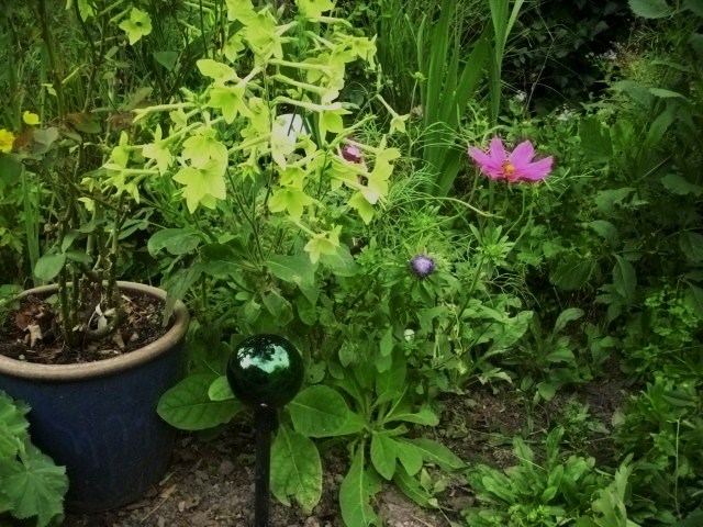 von den sich immer wieder aussaemenden blumen werden liebevoll geduldet:goldmohn, adonisroeschen, jungfer im gruenen, loewenmaul, portulakroeschen und cosmea. und da ich gerne mal die einjaehrigen sommerblumen wechsle, freue ich mich ueber jeden saemling, der im naechsten jahr irgendwo und irgendwie wieder auftaucht.aber auch diverse kraeutersaemlinge wie anis-ysop, borretsch, dill, koenigskerze usw. koenne sich (leicht dezimiert) einen platz auf den staudenrabatten sichern.