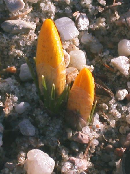 ?hier herrschen kahlfröste bei vorgestern noch ~ -12° ...aber selbst unter diesen bedingungen schieben dir kroken unerschrocken ihre blätter. dagegen fangen die cyclamen coum schon zu blühen an ;)norbert