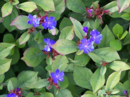 bei mir blühen zwei pflanzen von ceratostigma plumbaginoides, die ich im mai (!) gepflanzt habe.ich erwähne das deshalb, weil sie bei mir auf einer stelle stehen, die eigentlich nur aus lehm besteht. sie haben fast den ganzen tag sonne. die kürzliche trockenheitsperiode von drei wochen hat ihnen gar nichts ausgemacht. wer so etwas hat und einen schönen bodendecker braucht - meine empfehlung!(und ja, die haben da genug platz, den sie zuwuchern können.)
