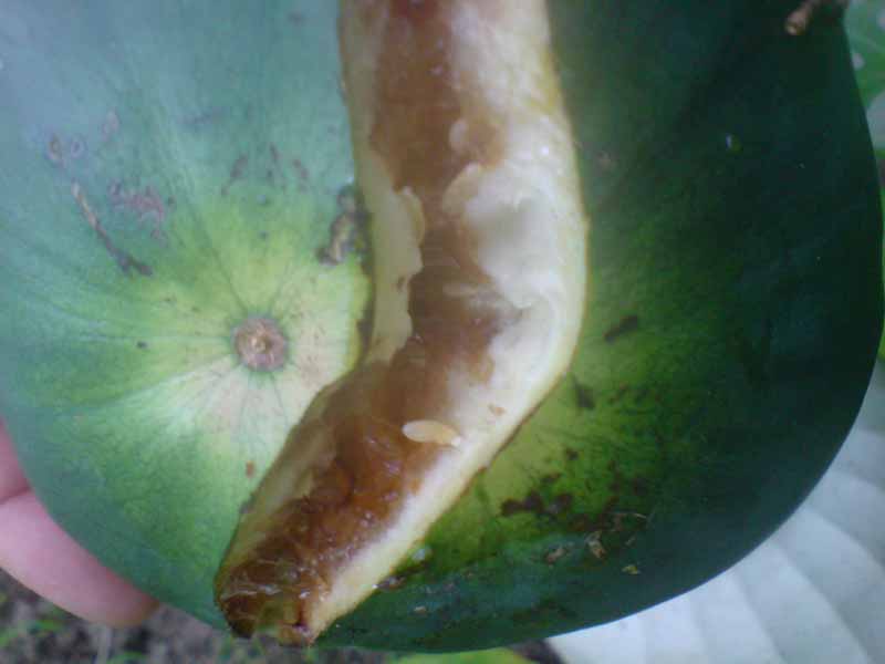 sa diese melone nicht mehr wachsen wollte hab ich sie mal angehoben um zu sehen wie sie unten aussieht!und auf ein mal ist sie mir aufgeplatz! Dabei hab ich garnicht fest zu gedrückt! das bild ist von vor 2wochen!.