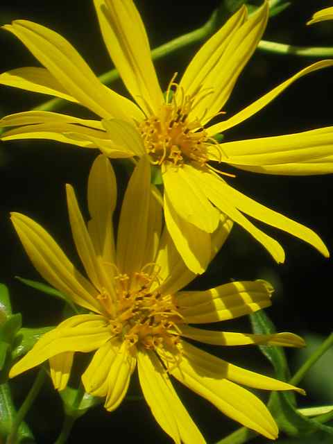 Das Zweite ist sicher so. Das Silphium hat aber für S. perfoliatum zu schmale Blätter und nicht die vierkantigen Stängel. Hier eine Großaufnahme der Blüten:(Ich weiß nicht, warum das Bild nicht kommt - ich habe es zwei Mal eingegeben)