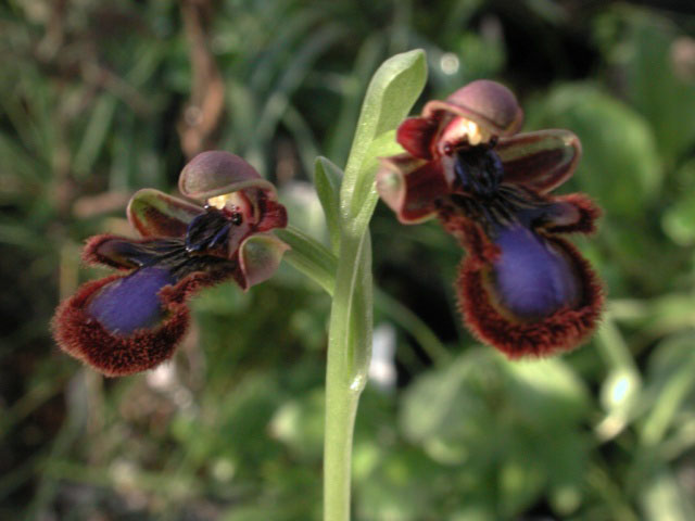 ... in Blue:ausgerechnet eine Orchidee (für die doch sonst "Blau" nicht existiert): Ophrys speculum, die mit ihrem blauen "Spiegel" sexgeile Insektenmännchen narrt und zur Pseudokopulation verführt ...