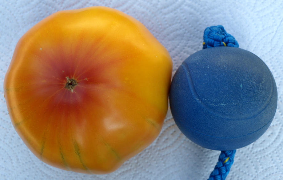 konnte gerade heute morgen noch so ein Ding ernten, wie ich die Ananastomate kenne.590g - haben wir zu zweit zum Frühstück verputzt.