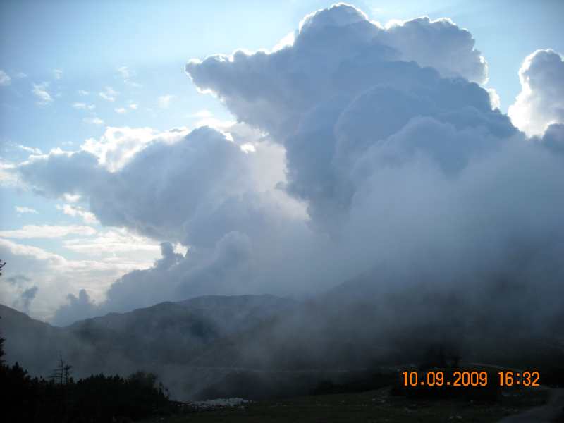Guten Morgen! 11°, bewölkt. Gestern trotz - oder gerade wegen - umherziehender Nebel einzigartiges Bergwetter bei angenehmsten Temperaturen ! Imposante Wolkenbilder auf dem Rückweg vom Alberfeldkogel zur Bergstation am Feuerkogel bei Ebensee: