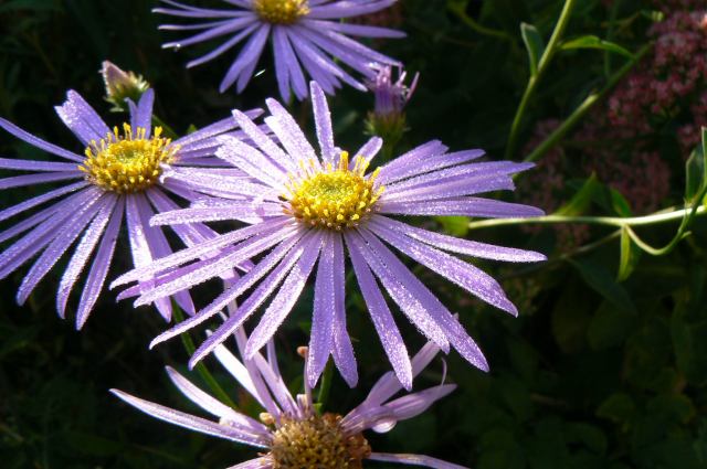 Sie wird bei mir bis 2 m hoch und steht immer noch aufrecht; der Blütenschirm ist über 60 cm breit.Eine sehr standfeste Aster, Höhe 150 - 170 cm.