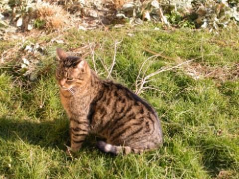 jetzt kommt die Fortsetzung:Das ist Schnürle. Er heisst so, weil er am Anfang als er bei uns auftauchte eine Schnur ganz fest um den Hals hatte. Er war aber zu scheu um sie ihm abzumachen. Wir sagten immer, der Kater mit dem Schnürle ist wieder da, bis sich der Namen verselbständigte...