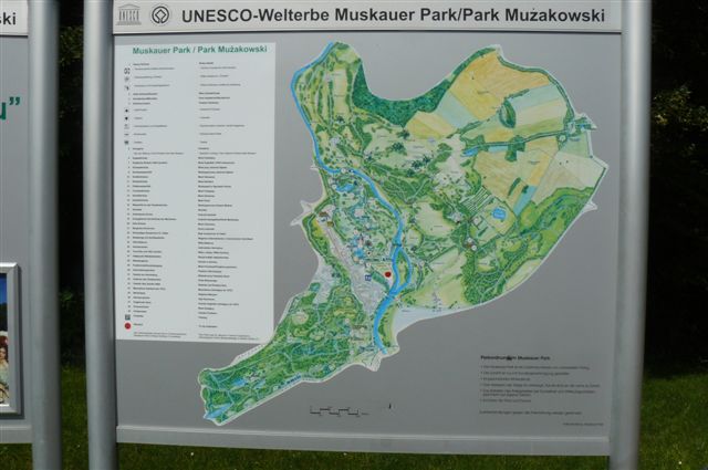 Meine Sommerreise hat mich nicht nur in dem Rosengarten Forst und in die Schlossgärtnerei Uebigau gebracht.An einem heissen Sommertag war ich in Begleitung im 600 ha grossen Pückler-Park in Bad Muskau unterwegs. Die Zweiteilung der Anlage auf deutscher und polnischer Seite macht den seit Juli 2004 zum Welterbe der UNESCO gehörenden Park einzigartig