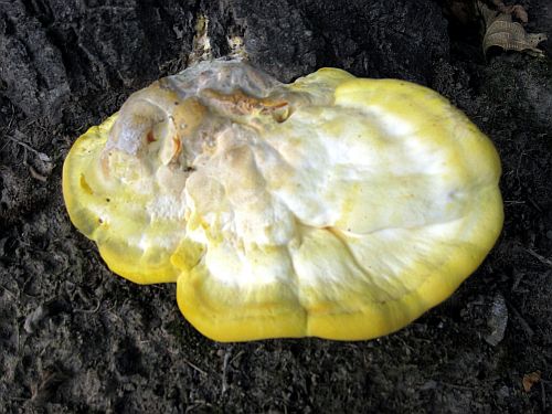 Was ist denn dieser für einer, der sich am Stumpf meiner ehemaligen Zwetschge täglich breiter macht und mit seiner weißlich gelben Farbe schon von ganz weit die Aufmerksamkeit auf sich zieht?