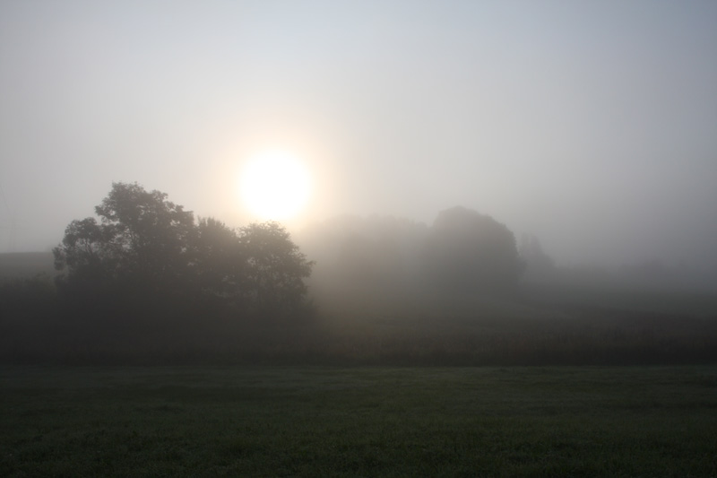 Hallo Evi,dein letztes Bild gefällt mir besser, weil man die Bäume besser sieht und das Licht, das gerade durch den Nebel fällt und dadurch den Tau auf den Gräsern zum Glitzern bringt