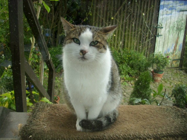 und hier ein aktuelles bild von meinem trösterchen le gris:laß mich rein, siehst du nicht, dass es regnet!