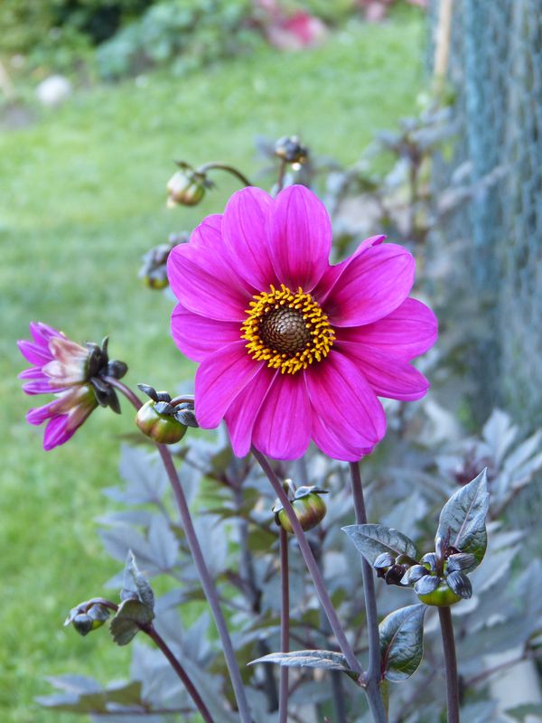 Wir sind erst dieses Jahr auf Dahlien gekommen, es wurde eine kleine Garteparzelle frei, .....und was nehmen wir da mal? So wurden es Dahlien. Diese schöne Unbekannte ist der Star, dominiert alle: