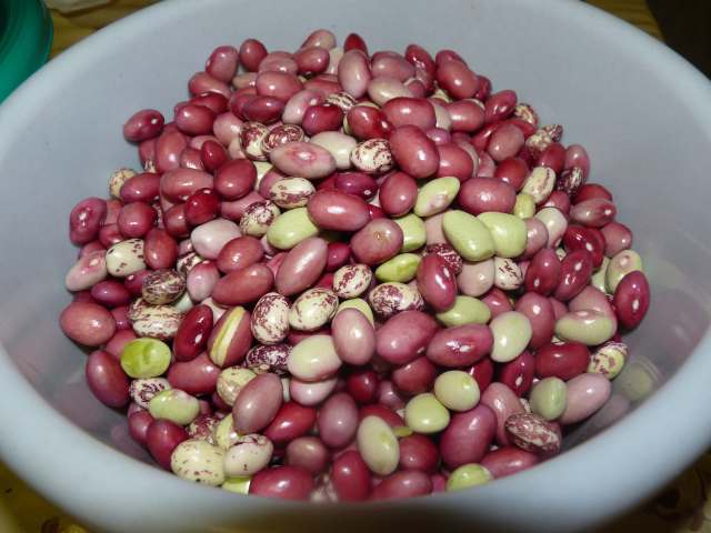 ausserdem habe ich gestern meine stangenbohnen von ihren fruechten befreit. das ist eine schuessel mit den "gruen"kernen: