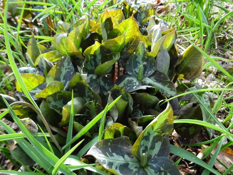 Bei mir schaut schon ein Trillium angustipetalum mit laub aus der erde mein t. nivale kommt gerade erst aus dem boden bis zur blüte dauert das noch vielleicht schaff ich es morgen mal ein foto zu machen