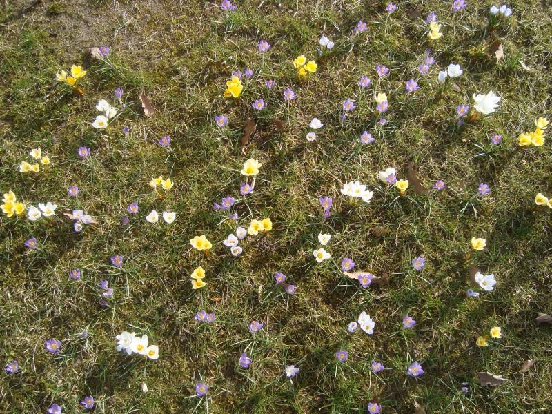 Sehr schön. Ist das Rasen oder eine sehr schöne Wiese und wann wird die gemäht? Ich bin auch gerade dabei mir eine Wiese zu schaffen.Na gut, dass auch meine das mit dem Rasen nicht wissen...Überall in der Wiese am Hang blühen die kleinen weissen Wildkrokusse hier seit Februar.Stellvertretend diese