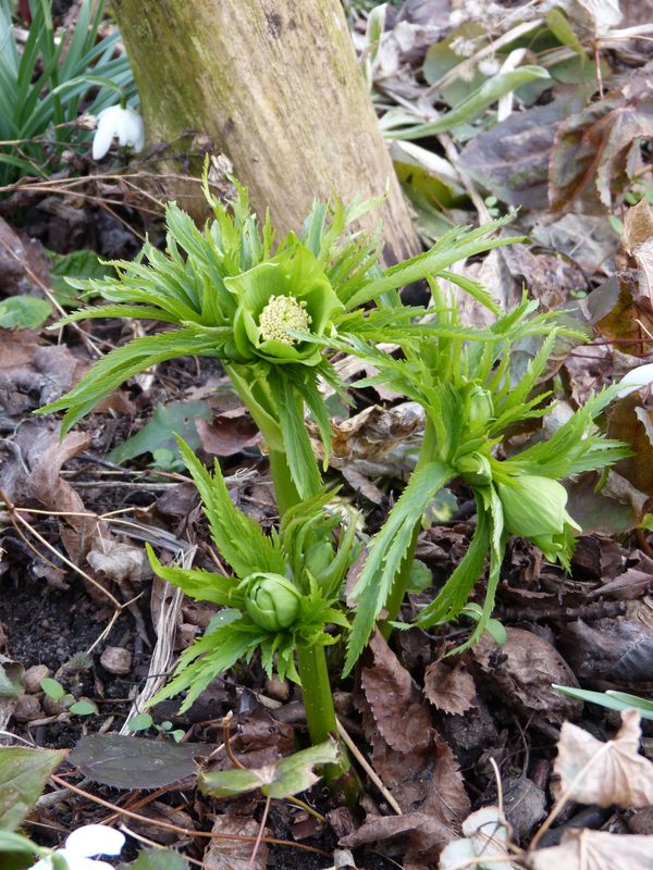 Meine beiden Helleborus croaticus mit Galanthus 'Straffan', inzwischen stimmen die Größenverhältnisse auch wieder. So makellos haben sie noch nie geblüht. :)