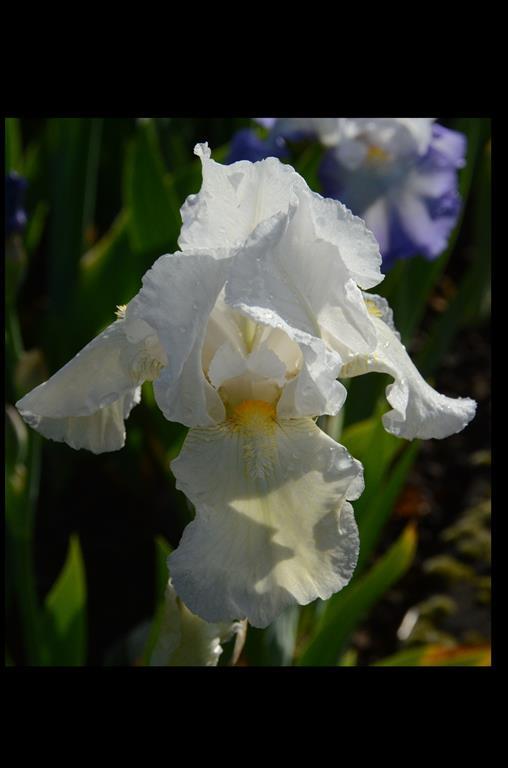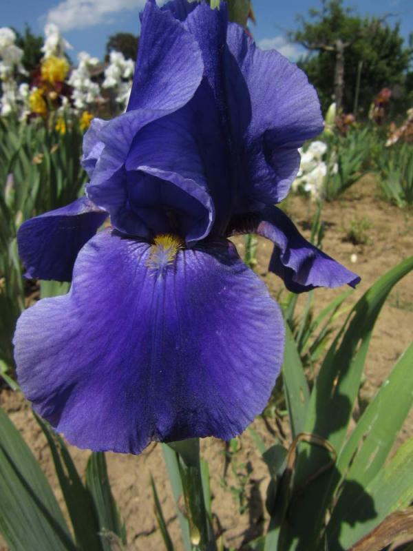 Mein Farbempfinden vermisst bei den Iris immer noch das reine tiefe Blau, welches auch Enziane oder Rittersporne zeigen. Einen Näherungswert zeigt meiner Meinung nach `Allegiance´, Cook, 1957, auch wenn die Blüten dieses Jahr etwas zicken.