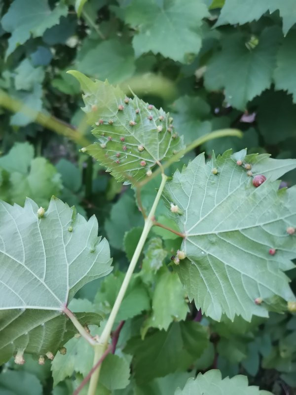 Nicht alle Reben werden wegen der Trauben und Beeren angebaut, viele hier ernten nur die Blätter (und geben natürlich gerne Stecklinge weiter, wurzeln ja so gut). Wenn das mit ernten regelmäßig passiert ist das auch ok, weil man mit den jungen Blättern den bevorzugten Lebensraum der Rebläuse entfernt. Wenn die Ernte ausbleibt, sieht es dann halt auch mal so wie auf dem Foto aus.