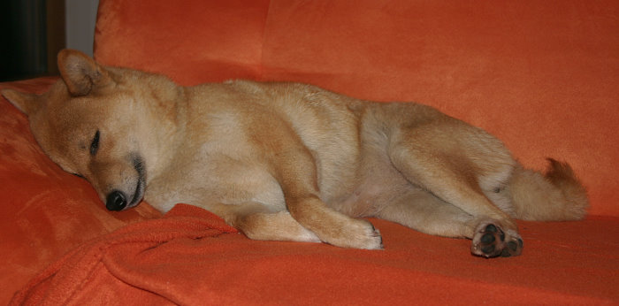 , unser gemeiner Spitz schläft lieber auf dem Fußabtreter oder dem blanken fußbodenbeheizten Marmorboden ;DToffee schaut auch sehr selbstbewußt