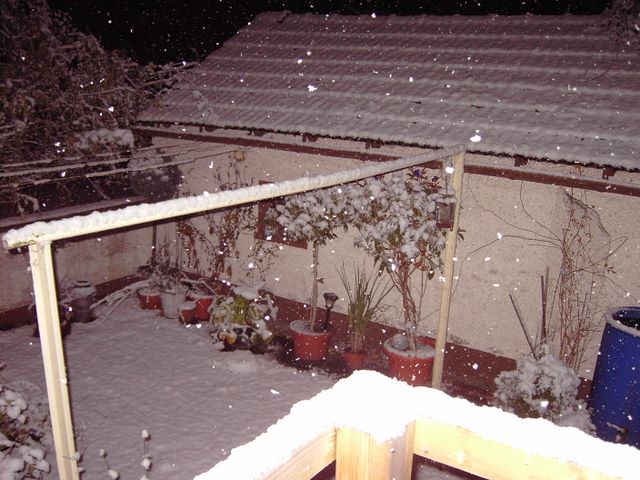 So sieht meiner eingepackt aus. Nach dem Foto habe ich ihn wieder zugedeckt. Soweit ich weiß, müssen die im Winter trocken bei +3/4°C stehen, damit die Blüteninduktion gut funktioniert. Warme Überwinterung quittieren sie schon mal mit Blütenlosigkeit. Da es bei mir in der Garage zu warm ist (über 7°C) und im GH bei Sonnenschein die Temperatur tagsüber schon mal über 10°C ansteigt, überwintere ich ihn draußen überdacht und trocken eingepackt. So hat er auch letzten Winter -18°C (kälteste Nacht) gut überstanden und hat dieses Jahr geblüht.Bei frostfreien Tagen decke ich ihn tagsüber auf und nachts wieder zu. Wenn nur wenig Frost angesagt ist, lass ich auch mal nur das Vlies oben drauf. Ab ca. -5°C kommt noch die gelbe Decke oben drauf. LG