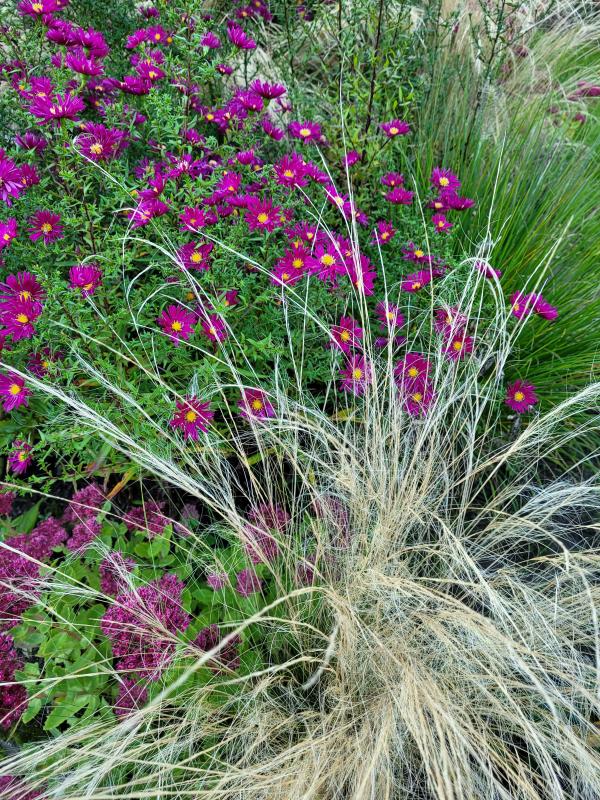 Farbexplosion bei unseren, leider schon vorgefundenen und daher namenlosen Sichtschutzwucherastern ...