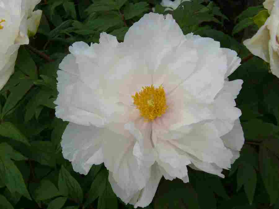 Hier drei "Ganzkörper". Die weiße links ist eine rockii, die anderen beiden weiß ich nicht (Foto aus 2011). Ich finde sie das ganze Jahr über wunderschön, auch die Herbstfärbung!Mich würden ja auch "Ganzkörperaufnahmen" von euren Päonien-Sträuchern interessieren. Ich habe zwei sehr schöne, großblühende, wunderbar duftende, die aber leider recht unansehnlich-gagelig in der Gegend rumwachsen und keinen schönen Busch geben. Dranrumschneiden mag ich auch nicht unbedingt. Also - welche Sorten geben eine Pflanze, die auch als Blattschmuckgehölz für den Rest des Jahres was hermacht?