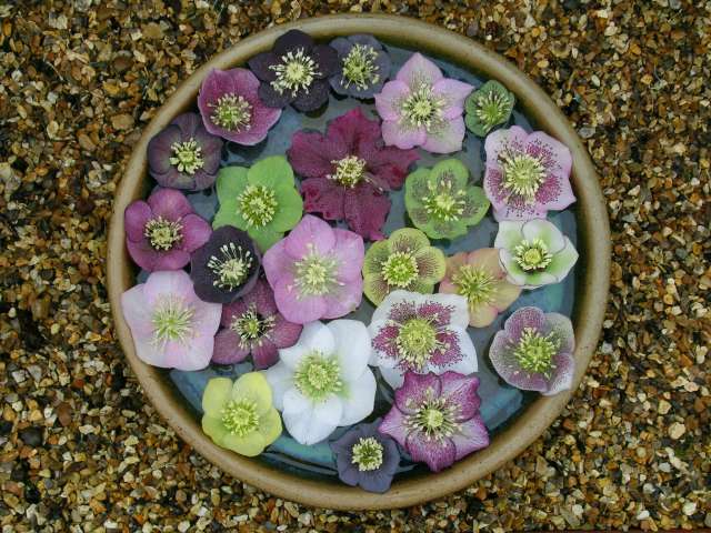 Hallo Scilla,ich habe die Helleborus-Blüten in meinem Garten gepflückt. Die Pflanzen stehen im Vorgarten, so dass ich sie nicht vom Wohn- oder Esszimmer aus sehen kann, wie das zum Beispiel bei meinen Kamelien möglich ist, wenn es ungemütlich kalt ist und ich mich hauptsächlich drinnen aufhalte.Deshalb finde ich es immer schade, wenn man von den hübschen Blüten nur wenig zu sehen bekommt, ganz davon abgesehen, dass sie ihr schönes Gesicht eher in Richtung Boden wenden. Es ist eigentlich erstaunlich, das man Helleborus-Blüten nur sehr selten – wenn überhaupt – im Blumenladen kaufen kann, denn sie halten in der Vase ca. 14 Tage, vorausgesetzt, man schneidet die Stiele der Länge nach auf, wie man das auch bei Alpenveilchen für eine längere Haltbarkeit macht. Ich pflücke die „Helleborüsse“ also reichlich ab, und auf diese Weise kann ich mich aus nächster Nähe sehr an ihnen erfreuen.Liebe GrüßeElke