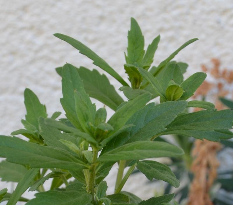 Habe ich auch, aber auch auf der anderen Hausseite.Das einzige, was ich mir vorstellen könnte, ist die Erdmischung in dem Kübel. Da habe ich auch Gartenerde mit untergemischt.Werde morgen mal einen Vergleich mit der Aster und Kalimeris vornehmen...Notfalls muss ich darauf warten, dass sich Blüten bilden.