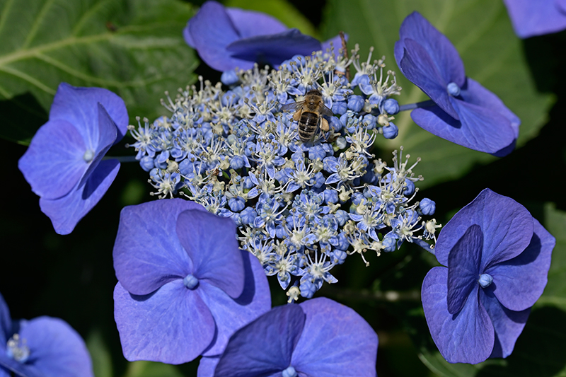 Der Garten hat mir eben Bescheid gesagt, ich möge doch bitte keine Ballhortensien, sondern Tellerhortensien pflanzen. Hier gibt es gerade massenhaft Gartenwollbienen, zumindest habe ich sie als solche bestimmt. Natürlich nicht an den Ballhortensien.