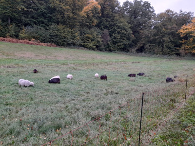Nur kurz: Tagesziel nicht erreicht. Die große Herde sitzt noch fest. Zwar ist an der Scheune gezäunt und der Teufelspfad ebenfalls. Aber Basti musste weiter und die Böcke auf derEngelke auch. Dort lauerten zudem meterlange Brombeeren. Wir waren bis in die Dämmerung beschäftigt