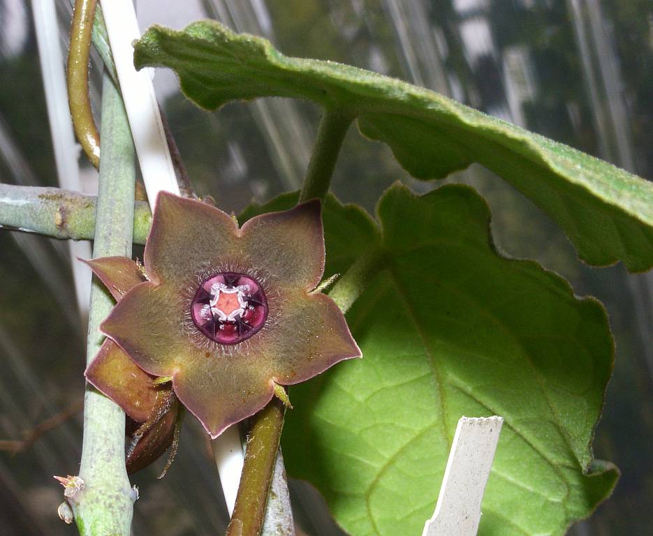 Aber da sie aber schon interessant anzuschauen sind, gibt's ein paar Bilder. Zunächst diese langwachsende Ranke mit dunklen Blüten, ...