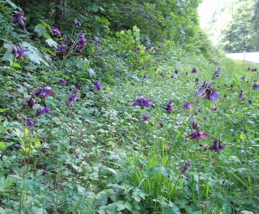 Ich komme ja aus Tirol und bei uns wächst Aquilegia atrata massenhaft neben der Straße!!! Dieses Foto hier zeigt zum Beispiel ein Vorkommen in Kufstein, wo sich die Aquilegia atrata mit Aquilegia vulgaris aus Gärten gekreuzt hat. Oft findet man daher auch weiße oder rosa Akelein wild.Habe ein bisschen in meinen Fotos von Wanderungen gestöbert und dabei dieses Foto von Aquilegia atrata an einem See gefunden. Wo genau das war weis ich leider nicht mehr, aber dürfte in Tirol gewesen sein.