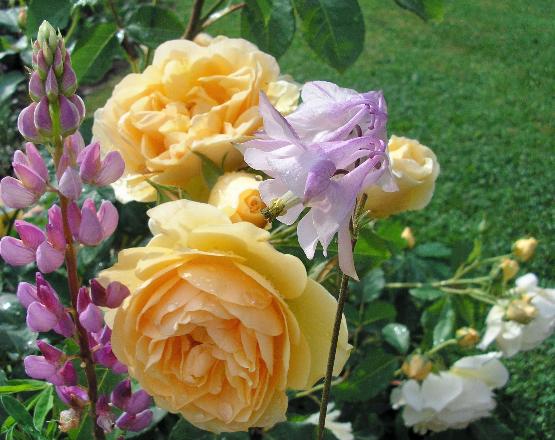 Hi du!!Ich finde ja die Rose und die Barlow passen zusammen, sber sonst hätte ich sie ja auch nicht fotografiert. Viel besser passt allerdings meine englische Strauchrose " Graham Thomas" mit der Aquilegia vulgaris "Sweet Promise" (nicht zu verwechseln mit "Sweet Surprise")zusammen, die ich auf der ersten Seite schon mal mit Sterndolden gezeigt habe. Die Lupine greift den Farbton auch auf.Bestimmt hast du, wie ich dich kenne, noch mehr Fotos von Akelein mit Rosen, die du uns bisher verwehrt hast!!!Gib es zu und zeig uns noch ein paar. Da Salomon18 will sie sicher auch sehen
