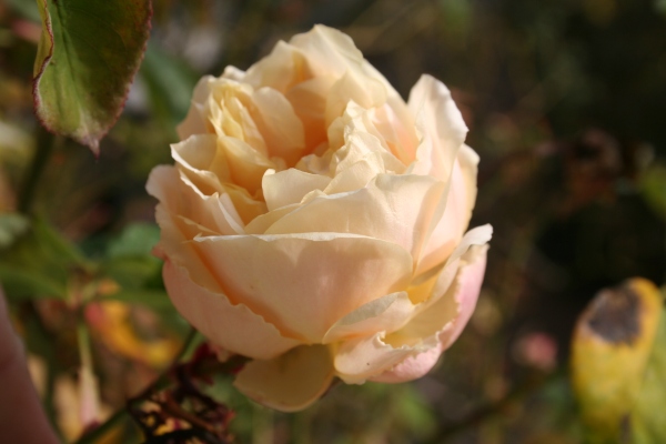 Die Farbe variiert sehr je nach der Witterung.Was sie gar nicht mag, ist Regenwetter.Ich hatte schon Jahre, da sah sie mitleiderregend aus, beigebraun und die Blüten haben sich nicht richtig geöffnet.Das ist deshalb so schlimm, weil es so viele üppige Knospen gibt. Und dann ist die Enttäuschung natürlich sehr groß.Aber sobald es Sonne gibt, entschädigt sie mich mit ihren üppigen großen Blüten. Kalte Nächte führen zu einer stärkeren Rosaschattierung, die das Cremegelb überlagert. Dann sieht sie am schönsten aus. Manchmal wirkt sie ganz rosa mit leicht cremegelben Andeutungen, oder das Apricot überwiegt. Ich suche mal ein Beispiel heraus.