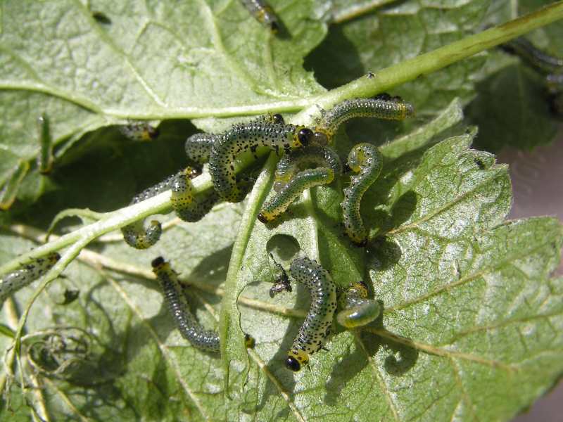 kein so schöner anblick, obwohl sie eigentlich ganz hübsch sind...die raupen der stachelbeerblattwespe. glücklicherweise noch einigermaßen rechtzeitig entdeckt und abgesammelt. ein stängel meiner jostabeere war schon komplett kahl gefressen.