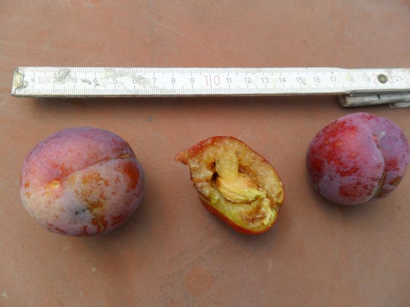 Meine Pflaumen reifen langsam,riesige Dinger, habe aber wieder Befall mit Pflaumenwickler ,auch zeigen sie starken Fruchtfall ich mach morgen mal ein Bild.