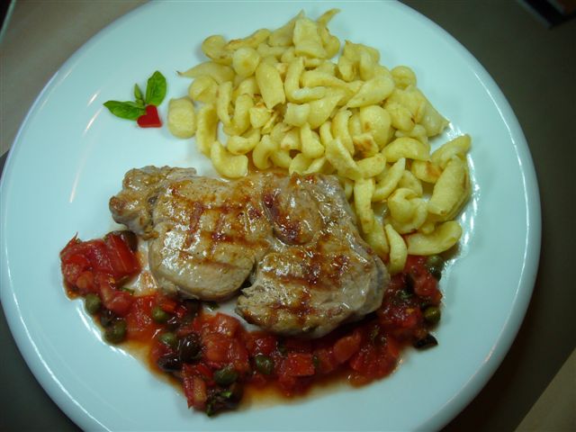 ich habe nicht gehungert, es gab:Tomaten-Crostinis mit RuccolasalatKotelette auf einer Tomaten-Oliven-Kapern-Sauce mit Spätzli, ich hätte gerne Polenta dazu gekocht, aber es gibt Tage da erfüllt man die eigenartigsten Wünschelauwarme Rotweinfeigen mit Zimteis