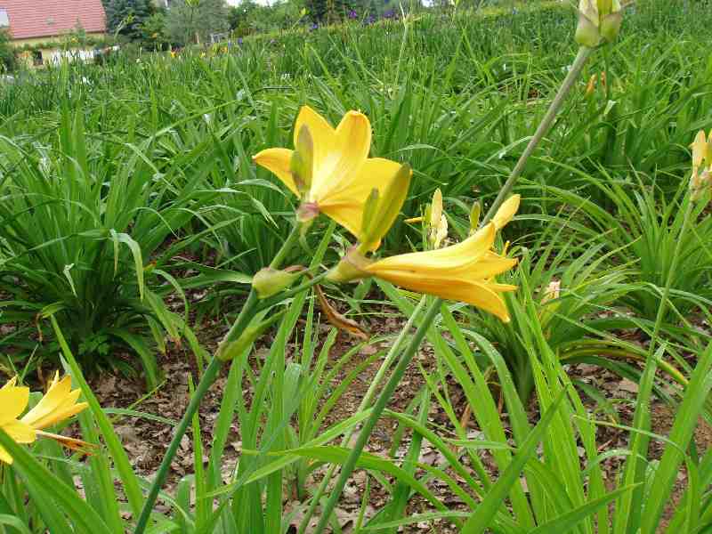 Meine frühblühende Hem hat Blüten, die überhaupt nicht hängen, sie ist außen wie innen (hell)gelb. Die Höhe beträgt 70-80 cm, sie macht Ausläufer und sie duftet stark - vielleicht wirklich nach Maiglöckchen.