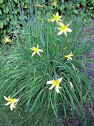 Meine 'Maikönigin' ist in voller Blüte. Hemerocallis lilioasphodelus hat heute Abend die erste Knospe geöffnet, ist also deutlich später. Außerdem macht sie Ausläufer, was die Maikönigin unterlässt.