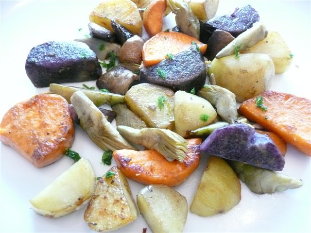 bei mir gab es:Frisée-SalatBratkartoffel mit Pilzen, frischen Artischocken und Sonnenblumenkernen, dazu Kräuter-Sauerrahm