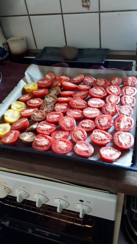 Ich habe einen zweiten Anlauf gestartet - Tomaten im Backofen trocknen - hoffe, dass ich diesmal nicht zu lange warte...