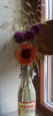 @Käfermama: Was ist eine "Steckblume"?@Knusperhäuschen: Es ist tatsächlich eine uralte Limo-Flasche die ich im Nachlaß meines Opas gefunden habe. Sie muß über 40 Jahre alt sein.