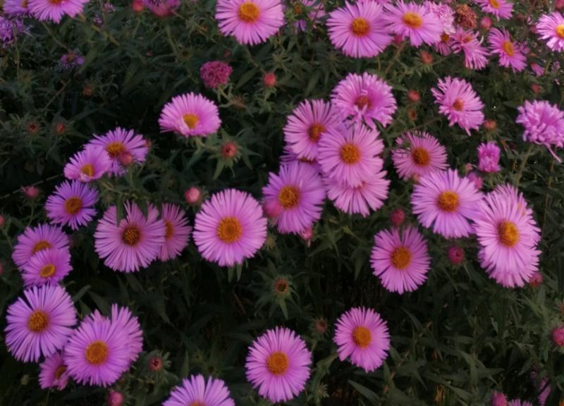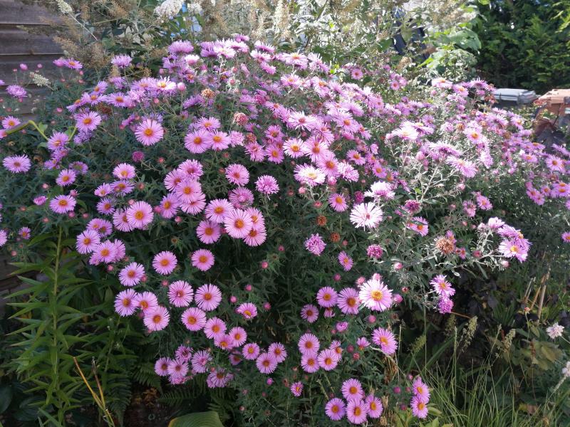 Herrlich, Eure üppig blühenden Asternbüsche. So weit sind sie hier momentan noch nicht. Meine Lieblingsaster 'Nachtauge' beginnt erst ganz zaghaft, ihre schöne Farbe zu zeigen. Nach 5 Standjahren hat sie in diesem Jahr erstmals ordentlich zugelegt und wird in diesem Herbst an mehreren Stellen zusammen mit diversen Gräsern blühen.