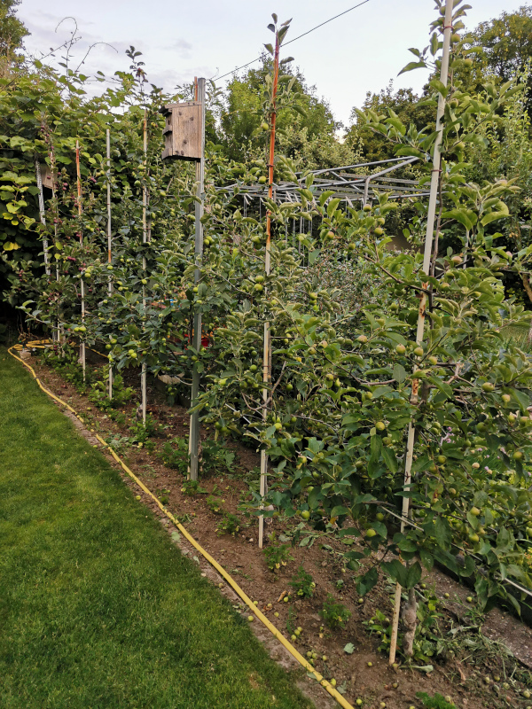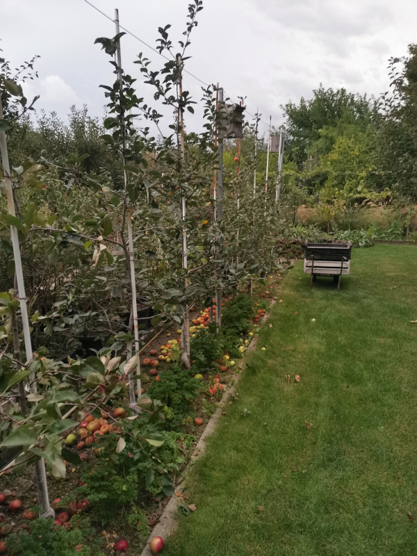 Mitte/Ende August war dann auch mal Unkraut gehackt, die ersten wurmstichigen Äpfel liegen am Boden.