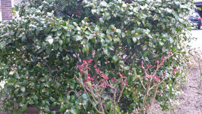 Hier die versprochenen Bilder von der nie geschützen Kamelie...sie ist locker 2 Meter hoch und nicht viel weniger breit.