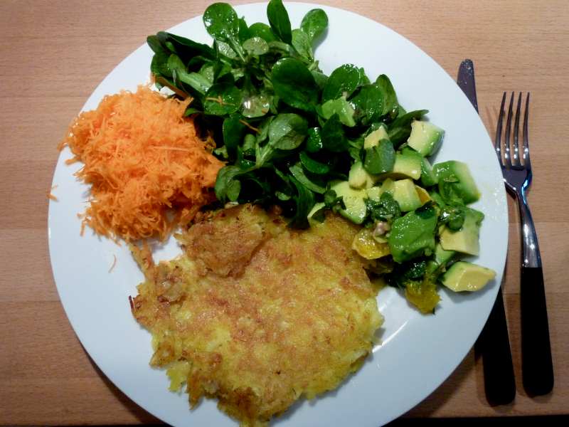 Hier gabs Rösti mit verschieden Salaten